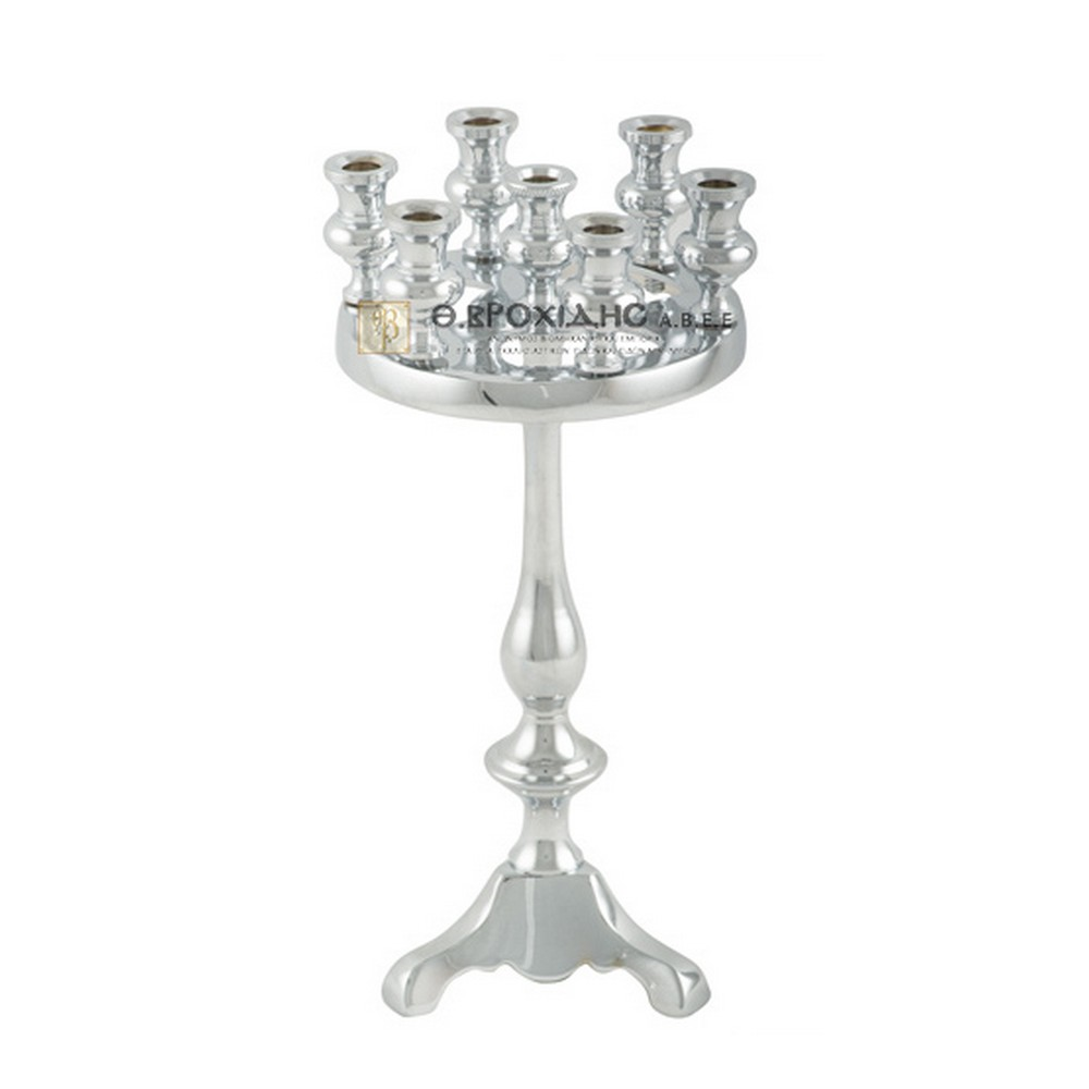 Μανουάλι από Ορείχαλο σε απόχρωση Χρωμίου 19 x 9 cm με επτά θέσεις για κεριά.